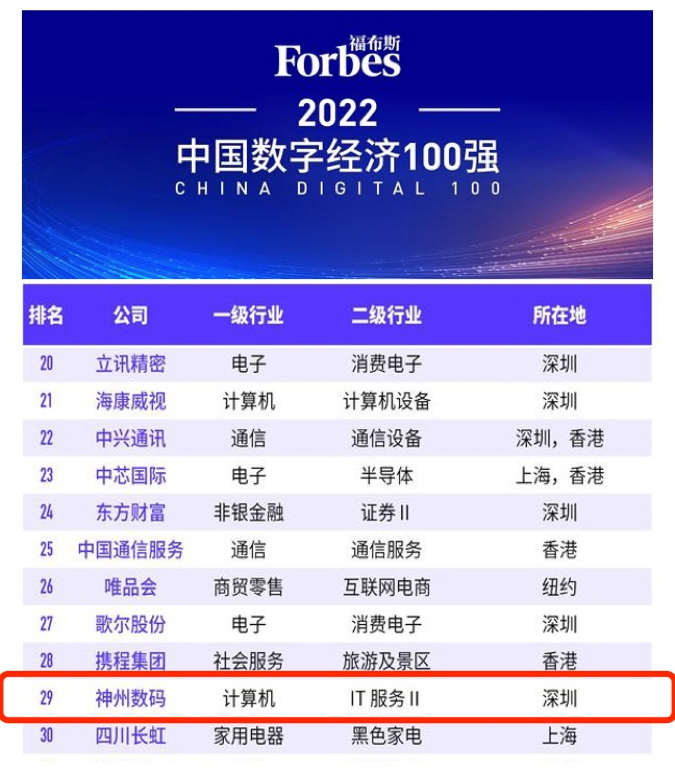 8月20日,“福布斯2022中国数字经济100强榜单”在江西上饶发布。作为数字中国的探索者、实践者和赋能者,z66体育数码凭借杰出的表现,位列百强榜单第29位,计算机类第3位,再度获得权威机构认可。